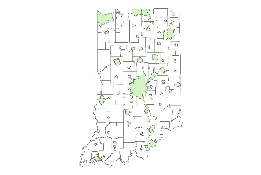 Copyright Text: Administrative Urban Area Boundaries Feature Class created by Indian GIS Department of Transportation (INDOT)